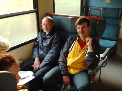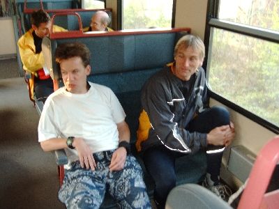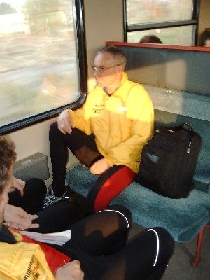 mit der Bahn zum Start, v.l. Michael Puckert und Marathon-Depütant Rainer Tekaat