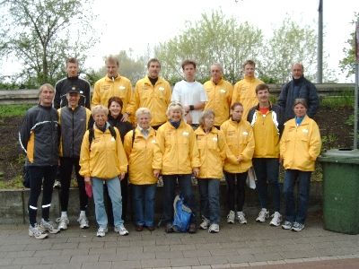 Die "Gelben" (Läufer und Betreuer) nervös vor dem Start in Osterfeld