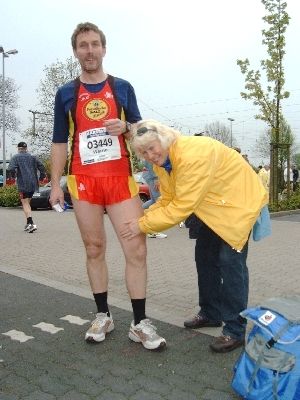 Betreuerin Andrea Boland im Gespräch mit Marathoni Michael Terhorst